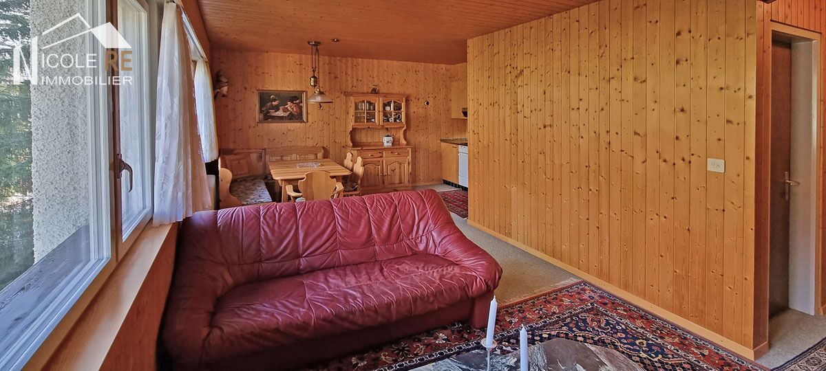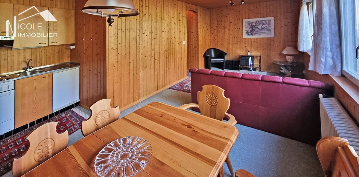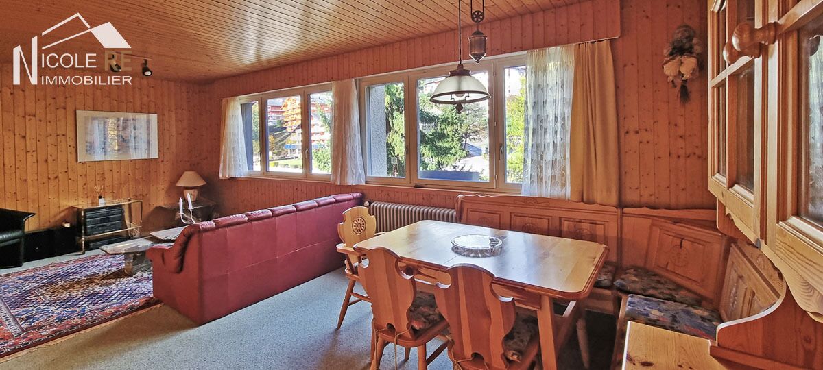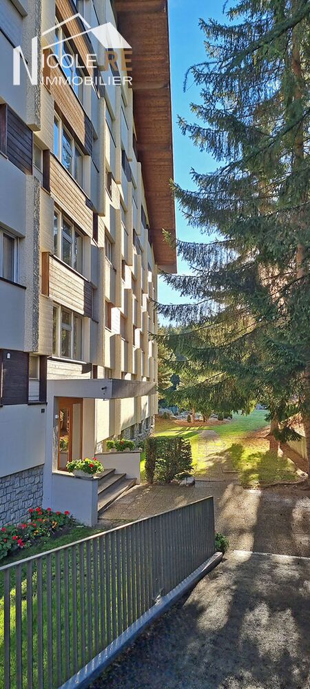 Très charmant et lumineux pied-à-terre à Crans-Montana, à moins de 10 minutes à pied du centre de la station. Ce 2.5 pièces d’une surface d’environ 47m2 vous offre le confort d’une grand chambre à coucher et près de 25m2 pour son salon/salle-à-manger/cuisine au concept ouvert. Situé dans un magnifique cadre de verdure, au calme, vous bénéficierez d’une vue au Nord sur les belles constructions environnantes de style chalet.